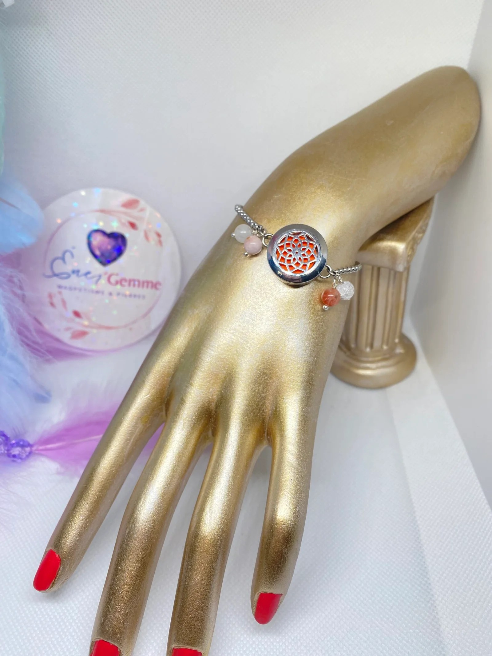 Découvrez le bracelet d’aromathérapie « Joie de Vivre », une création lumineuse qui unit l’énergie positive des pierres naturelles aux bienfaits envoûtants des huiles essentielles. Ce bijou, fabriqué en acier inoxydable pour une durabilité optimale et un style élégant, est orné de pierres soigneusement sélectionnées : pierre de soleil, jade blanc, opale rose et cristal de roche, toutes en 6mm.