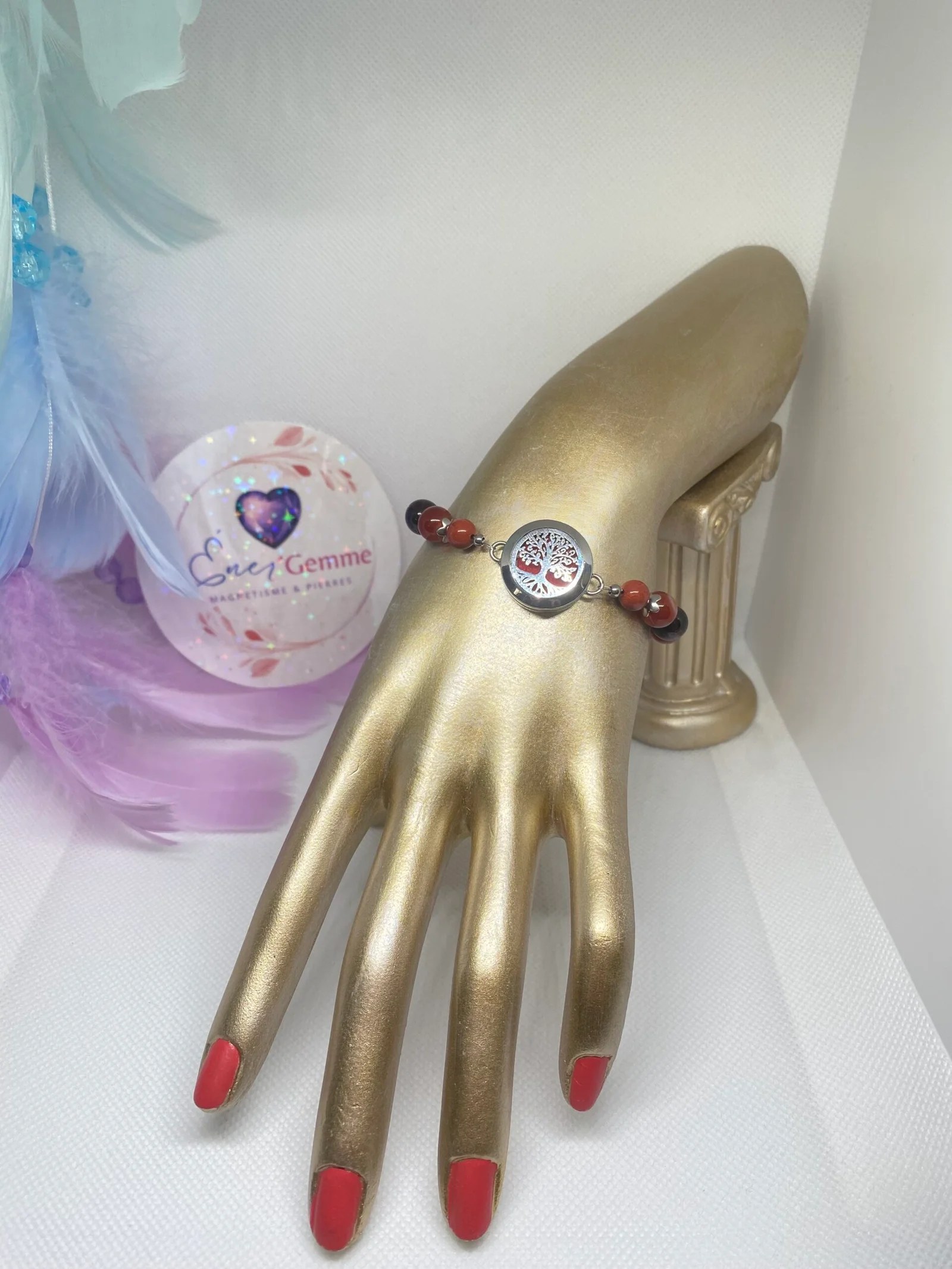 Découvrez le bracelet aroma’pierres « Regain d’Énergie », une création vibrante conçue pour revitaliser votre esprit et dynamiser votre corps. Ce bijou, entièrement composé de pierres naturelles et monté sur un fil en acier inoxydable pour allier résistance et élégance, est l’allié idéal pour retrouver force et vitalité. Les pierres sélectionnées avec soin — Jaspe Rouge et Quartz Fumé en 6mm et Cornaline, Grenat Almandin en 8mm— formant un cercle énergétique autour de votre poignet. Ces pierres sont reconnues pour leurs propriétés énergisantes et stabilisantes, faisant de ce bracelet un compagnon indispensable pour surmonter la fatigue et redynamiser votre quotidien.